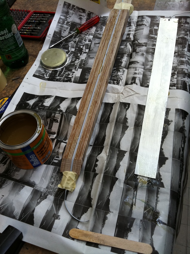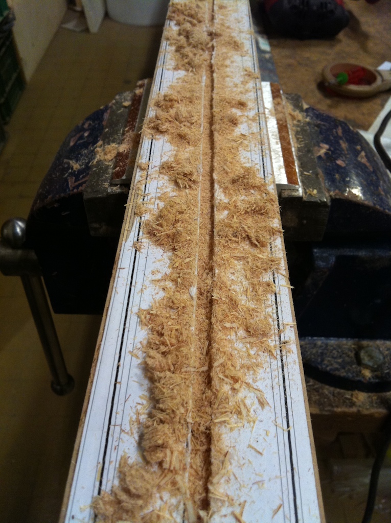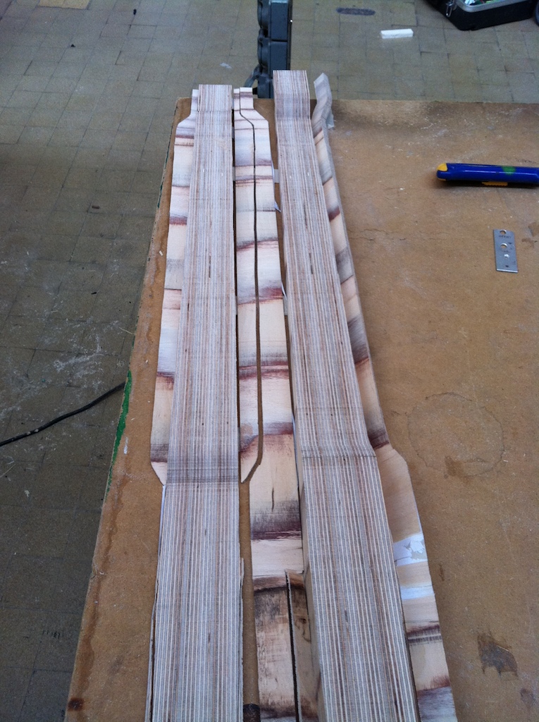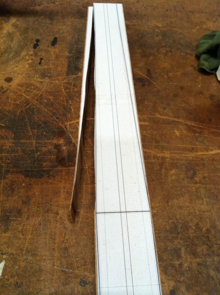 - The neck after planing the fingerboard side, where I will glue the cutting template printout