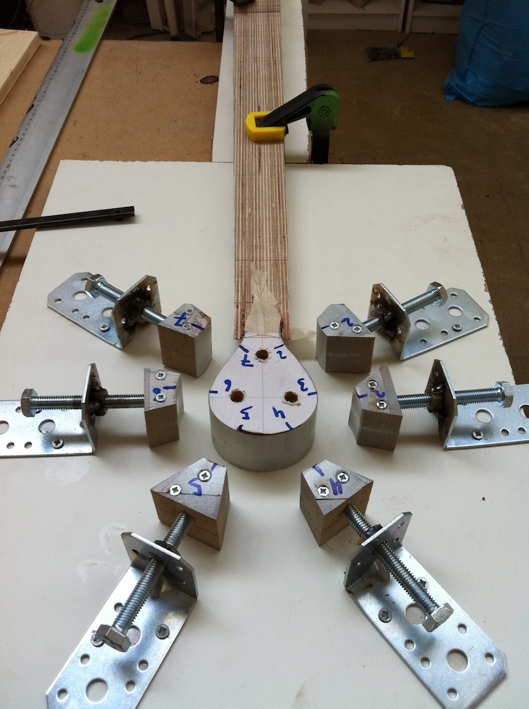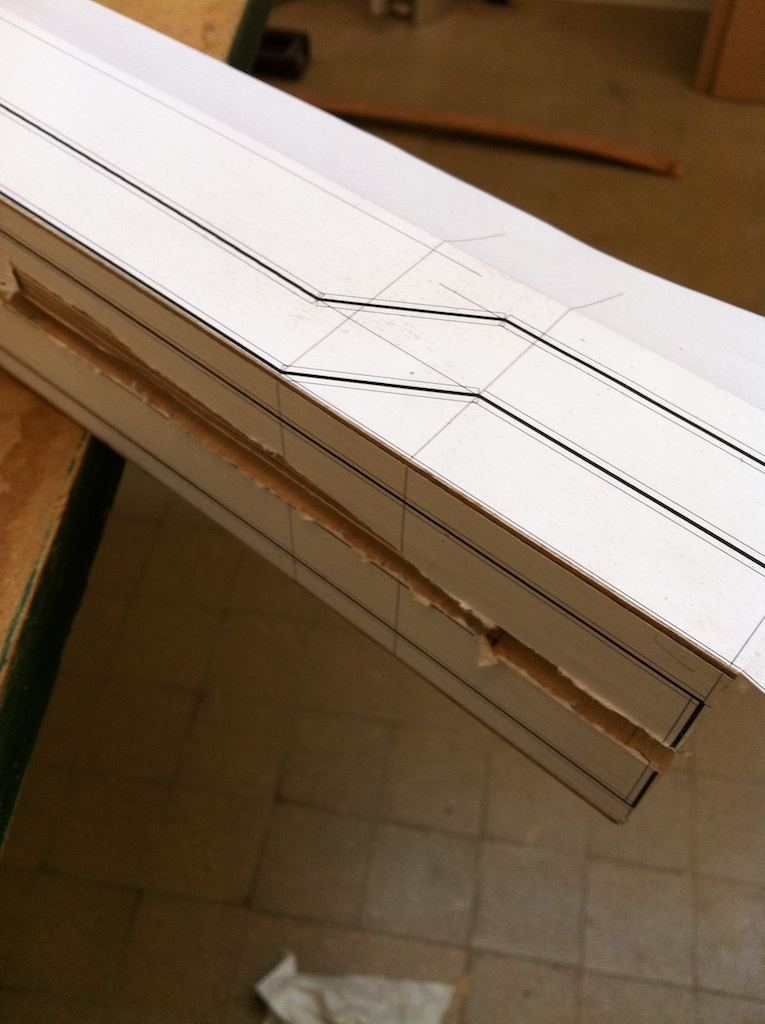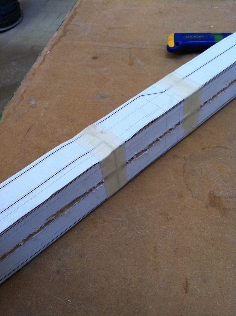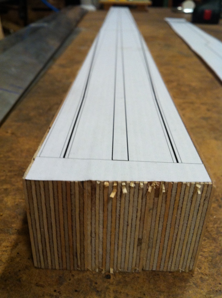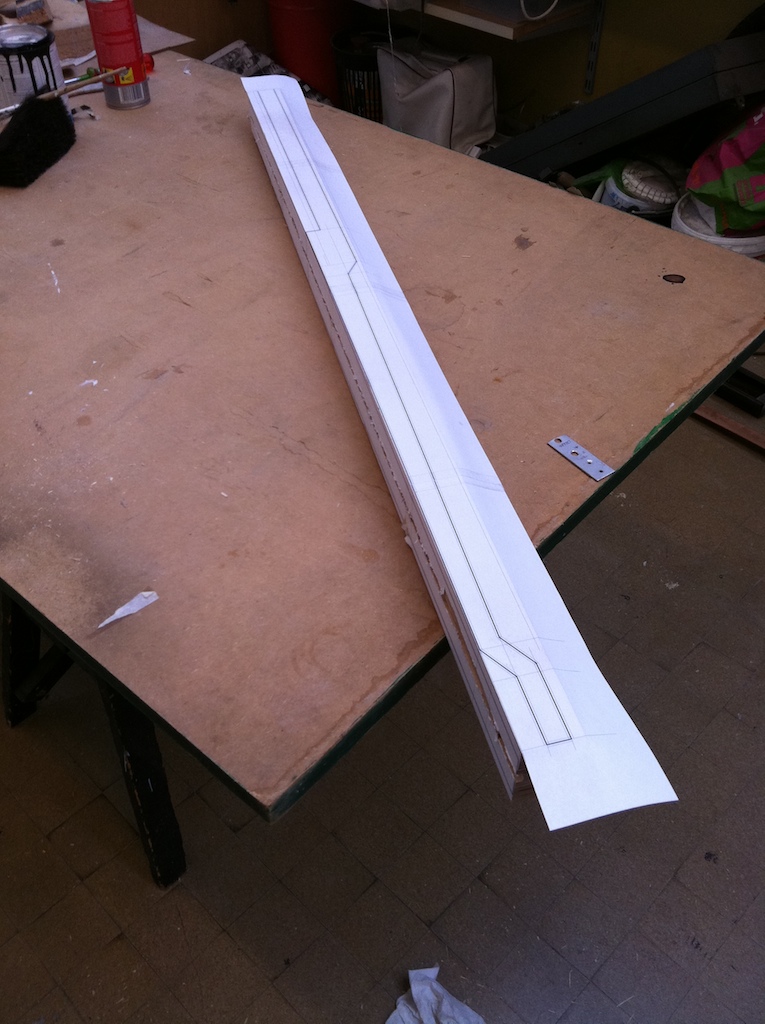 - The neck after planing the fingerboard side, where I will glue the cutting template printout