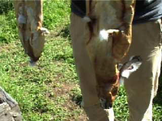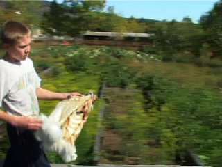 ...et deux lapins blancs sibériens qu'il a chassés lui-même.