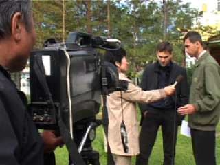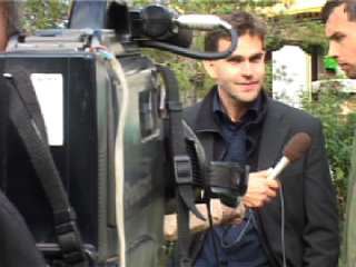 photographe et un journaliste du canard du coin + la rédacrice de la télé -